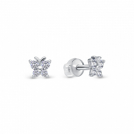 Серьги с фианитом родированные серебро 925*