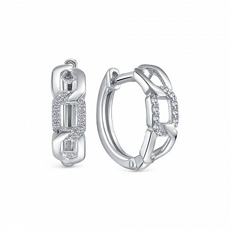 Серьги с фианитом родированные серебро 925*