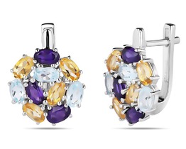 Серьги, аметист , топаз , цитрин, Алира