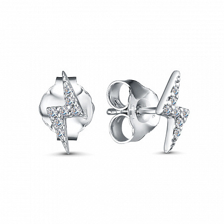 Серьги с фианитом родированные серебро 925*
