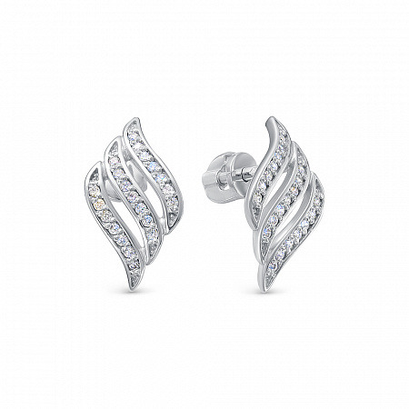 Серьги с фианитом родированные серебро 925*