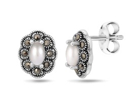 Серьги из серебра с чёрным агатом родированные С-4996-Р-Ча