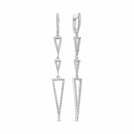Серьги с фианитом родированные серебро 925*