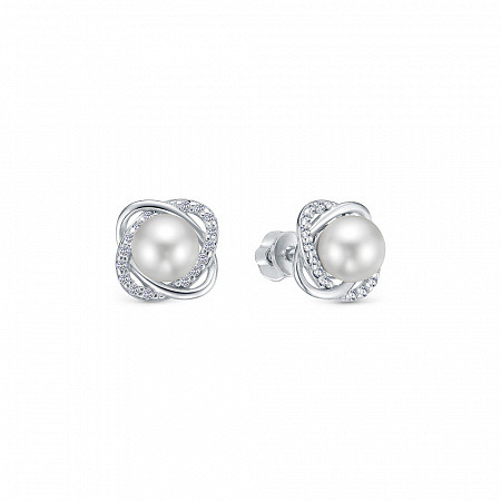 Серьги с иск.жемчугом родированные серебро 925*