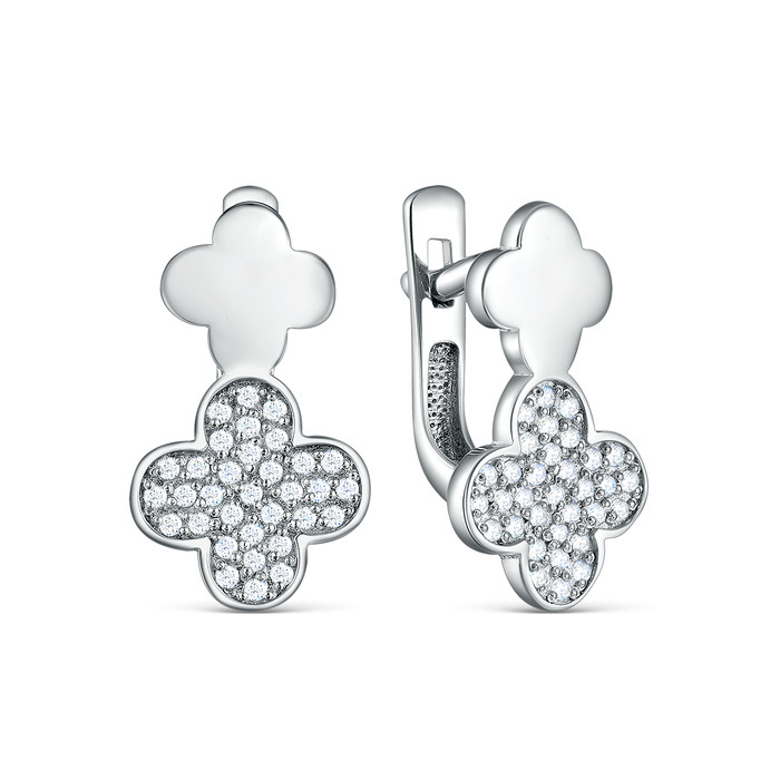 Совместные покупки Омск Ювелирные украшения и бижутерия Серьги — Серьги в форме клевера из серебра с фианитами родированные 925 пробы 04-302-0262