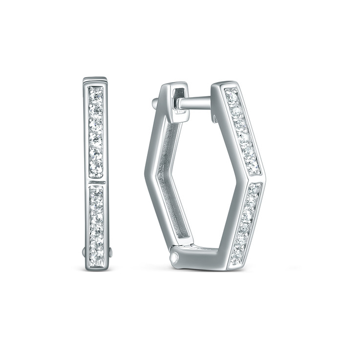 Совместные покупки Омск Ювелирные украшения и бижутерия Серьги — Серьги восьмиугольники из серебра с фианитами родированные 925 пробы 2-016р200