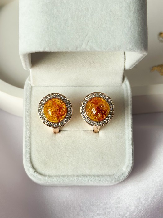 Очаровательные серьги из дубайского золота с янтарем