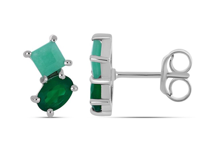Серьги, арт.657869 Серебро Серебро 925, 1,64 гр., зеленый агат , изумруд берилл