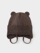 Двойная шапочка с отворотом. Оба слоя и отворот связаны из мягкой акриловой пряжи. Сбоку пришит лейбл. Ушки-завязки пришиты вручную. Подойдет на холодную осень/весну или теплую зиму с капюшоном. Размер = окружность головы в см.