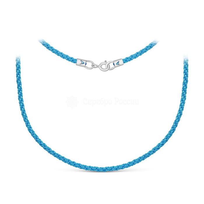 Шнурок текстильный плетёный с элементами из родированного серебра (голубой)