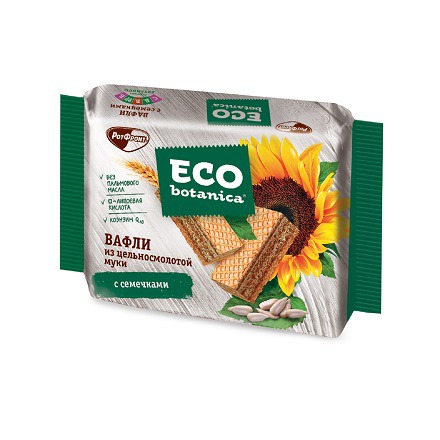 Ароматные вафли Eco-botanica с нежной кремовой прослойкой и цельными семенами подсолнуха - сладкое блаженство для любителей полезных продуктов. Вафли обогащены витаминами (С, В1, В2, В6, РР), фолиевой кислотой, железом, коэнзимом Q10 и альфа-липоевой кислотой. Яркий подсолнечный аромат, насыщенный вкус, тающая во рту текстура – хрустящий витаминный коктейль! Вафли Эко Ботаника прекрасно сочетаются с чаем, кофе, хороши они и в качестве легкого сладкого перекуса.