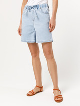 Шорты свободного кроя. Выполнены из текстильного полотна кофейного цвета в полоску. А-силуэт. Пояс на резинке. По передней части имитация застежки на 3 пуговицы. Карманы-хулиганы. По передней и задней части вертикальные швы. Длина 37 см