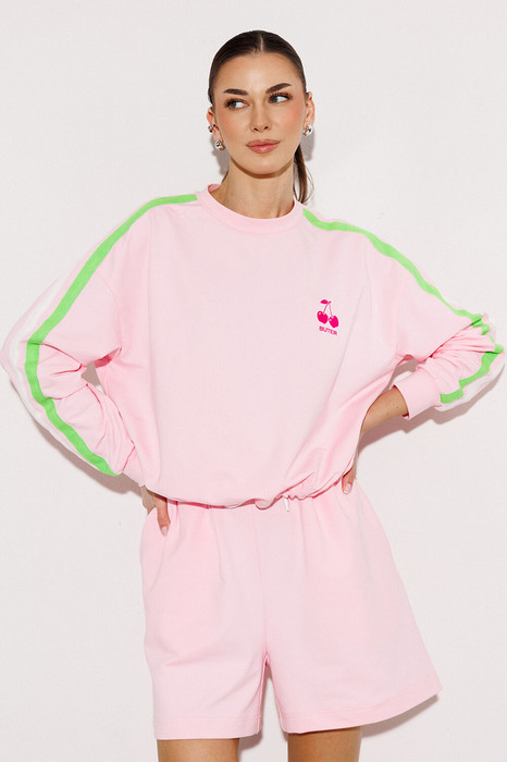 Шорты трикотажные (2-хнитка) на притачном отстроченном поясе с нашивкой. Шорты с карманами в боковых швах с наклонным входом и по низу широкая подгибка.