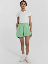 Шорты выполнены из трикотажного полотна с блеском. Шорты облегающего силуэта с высокой посадкой, на цельнокроеном поясе с эластичной тесьмой.