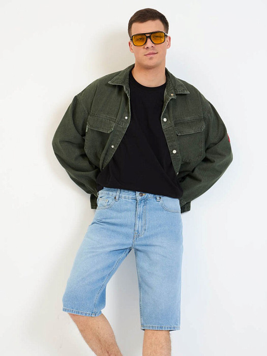 Мужские классические джинсовые шорты с пятью карманами. Посадка Regular fit (полуоблегающие по бедру), Средняя талия  спереди и высокая сзади, немного зауженные к низу.Застежка на молнии. Выполнены из традиционной хлопковой  ткани denim. Светлая стирка со слабовыраженными  потёртостями спереди и сзади.
