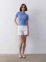 Детали: шорты длины мини на запах, застежка на потайную молнию в боковом шве, низ отлетной детали переда с кружевной отделкой.