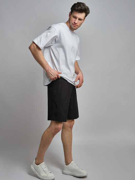 Классические мужские шорты из легкой эластичной плащевки. В боковых швах обработаны карманы. Пояс шорт по талии регулируется шнуром.