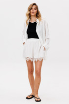 Шорты в голубом оттенке выполнены из эластичного денима. Модель с эффектной стиркой и трендовым ассиметричным рваным краем свободно сидит по фигуре и не сковывает движений. Сзади изделия фирменный брендированный патч.
