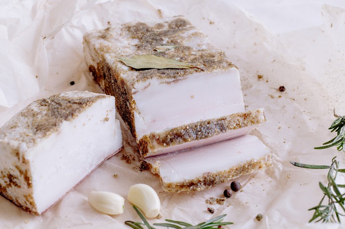 Шпик, соль, чеснок