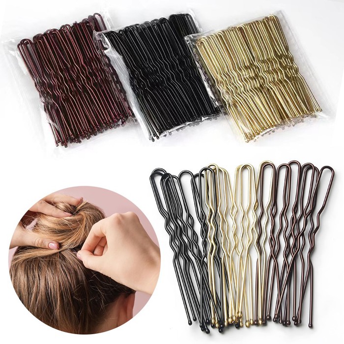 Шпильки для волос - главный инструмент для создания вечерних и повседневных причесок. Набор состоит из 50 шпилек размером 6 см. коричневого, черного или золотого цвета на выбор.