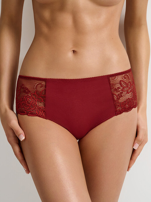 Трусы-слипы с классической посадкой из качественного хлопка и широкими  кружевными вставками по бочкам спереди. Задняя часть выполнена из кружева с небольшой вставкой из хлопка. Эффектный крой и  элегантное кружево с цветочным орнаментом придают модели изысканный вид.