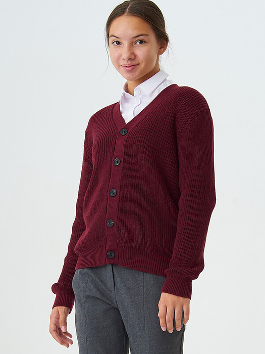 Вязаный кардиган для мальчика с  V-образным вырезом и застёжкой на пуговицы. Манжеты и низ кардигана оформлены фактурной резинкой. Кардиган выполнен из хлопковой пряжи премиального качества с включением 10% мягчайшего кроличьего пуха. Высокое содержание хлопка в составе обеспечивает отличную воздухопроницаемость и комфорт в повседневной носке.