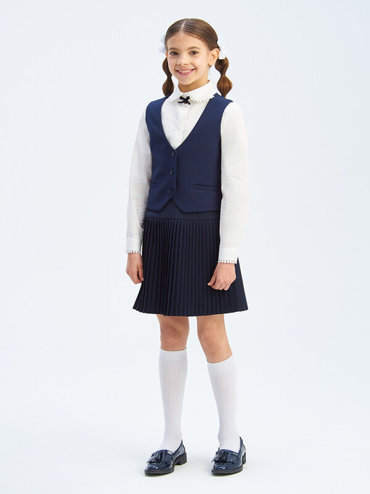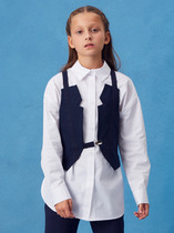 Жилет из габардина на подкладке для девочки. Полочки дополнены двумя прорезными карманами с листочкой. Застегивается на 3 пуговицы. Жилет будет прекрасным дополнением к моделям из школьной коллекций SMENA, отличный вариант на каждый день.