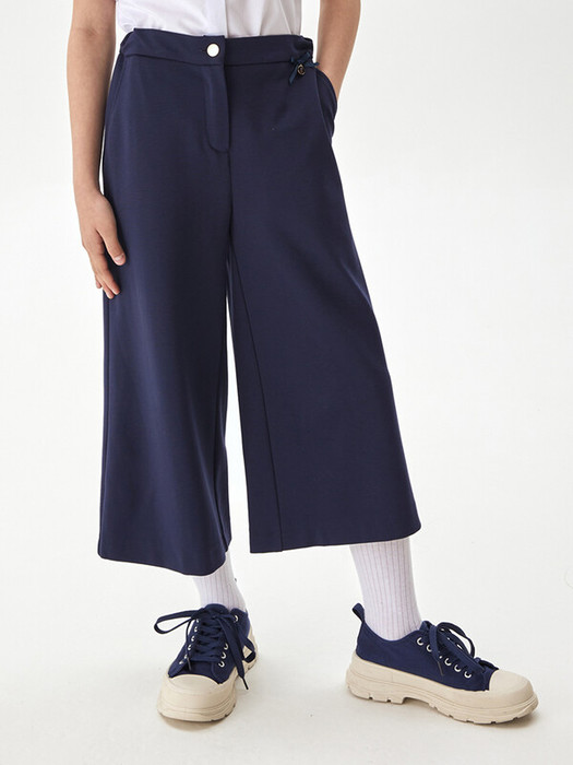 Комфортные трикотажные брюки-кюлоты, могут сочетаться с разными стилями и помогут создать модный образ. Пояс дополнен евро-резинкой, с возможностью регулировки, передняя застежка-молния, боковые карманы. Пояс декорирован бантиком с украшением, "