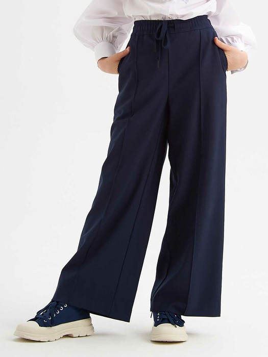 Брюки палаццо для девочек изготовлены из немнущейся костюмной ткани высокого качества, которая идеально подходит для брюк данного фасона. Расширяющийся от пояса силуэт, высокая талия и пояс на резинке не стесняют движений. Брюки имеют карманы достаточной глубины. Брюки палаццо элегантно смотрятся на девочках любого роста.