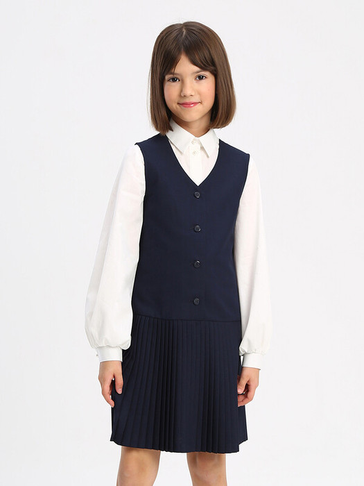 Классический сарафан из износостойкой и устойчивой к смятию костюмной поливискозы. Полуприлегающий силуэт с заниженной линией талии не сковывает движения и отлично сидит на любом типе фигуры. Отрезная плиссированная юбка прекрасно держит форму за счет свойств используемого материала. Застегивается на пуговицы по центру полочки. Вырез горловины V-образной формы. Отличный вариант на каждый день