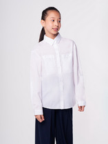 Укороченная блузка свободного силуэта для подростков из смесового хлопка с отложным воротником со стойкой и короткими свободными рукавами. На полочке расположен накладной карман с декоративным элементом. Застежка на планку с пуговицами. Высокое содержание хлопка в составе обеспечивает отличную воздухопроницаемость и комфорт в повседневной носке. "