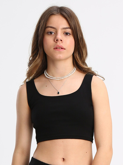 Удобный базовый облегающий топ для девочки, укороченный, с широкими лямками. Выполнен из эластичного трикотажного полотна.