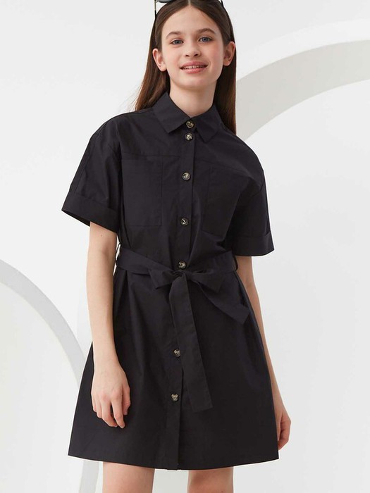 Платье-рубашка в стиле сафари из 100% хлопка. Модель свободного силуэта длиной выше колена. Короткий широкий рукав, два накладных кармана на передней части и удобные боковые карманы в швах – продуманные детали делают платье стильным и комфортным. В комплекте с платьем – пояс, позволяющий создать акцент на талии. Модель застегивается на роговые пуговицы по всей длине. Размерный ряд 128 – 176 см.