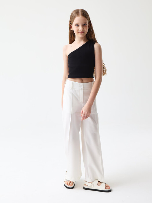 Асимметричный укороченный базовый топ в рубчик. Мягкий трикотаж из смесового хлопка. Размерный ряд 128 – 176 см.
