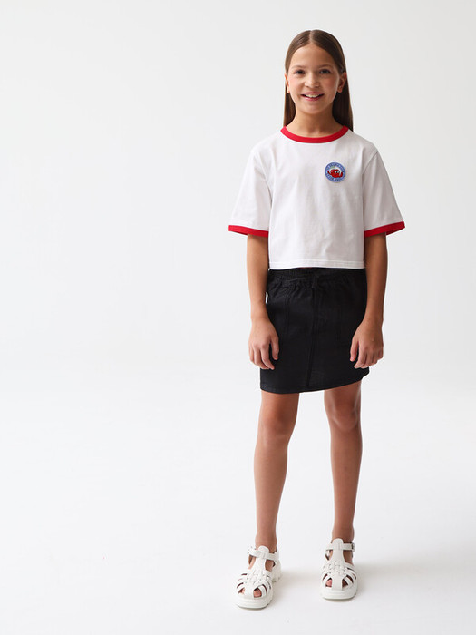 Юбка из лиоцелла прямого кроя. Средняя посадка с широким поясом на резинке. По поясу расположен рулик в качестве завязки, что добавляет комфорта в носке. Крупные накладные передние карманы и задние классические. Размерный ряд 128 – 176 см.