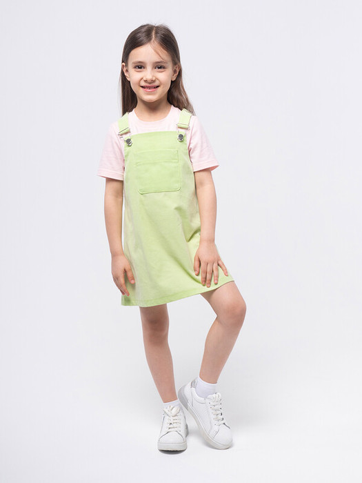 Короткий сарафан из вельвета А-силуета на регулируемых бретелях. Дизайн сарафана позволяет сочетать его с любимыми фотбалками. Спереди расположен фунциональный и стильный карман. Модель представлена в 3 цветах.