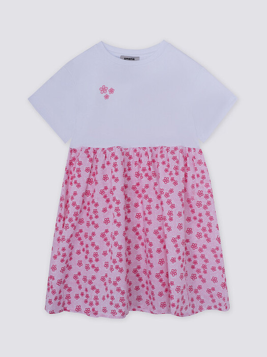 Платье летнее из смесового хлопка с контрасной юбкой с цветочным орнаментом. Короткие рукава. Прилегающий верх и расклёшенная отрезная юбка с мягкими складками делают силуэт неотразимым. Аккуратный вырез горловины подчёркивает красоту шеи.