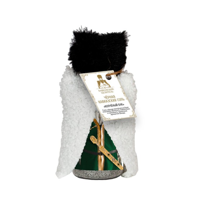 Соль черная кавказская, копченый бук, пластик, папаха+бурка, 120 мл, «Кавказский