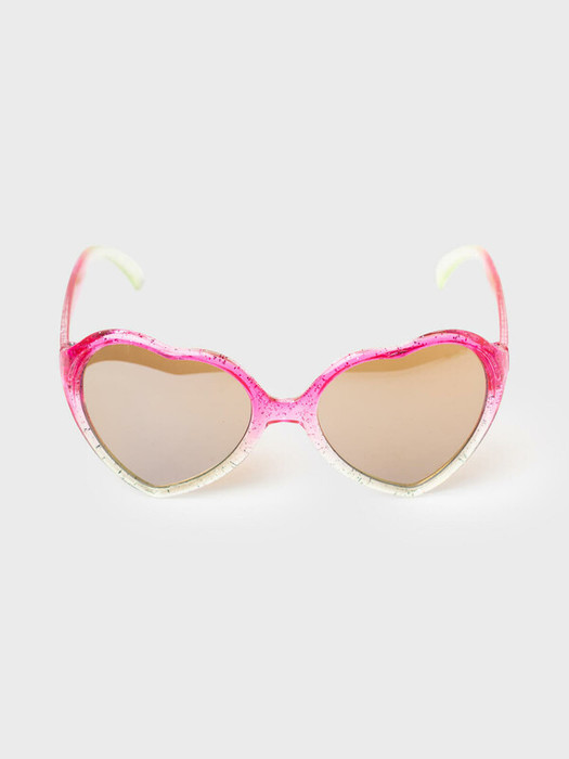 Солнцезащитные очки с прозрачной оправой с блестками для маленьких модниц. Форма оправы -  сердечко. Солнцезащитные очки с фильтром Cat3. Затемненные линзы имеют защиту UV400, которая отражает 100% ультрафиолетовых лучей с длиной волны менее 400 нанометров, эффективно блокируя все ультрафиолетовые лучи при солнечном свете. Гибкая, устойчивая к ударам, оправа создана для того, чтобы дети могли активно играть, не беспокойтесь о случайных падениях очков. Небьющиеся акриловые линзы. Ширина оправы - 124 мм, длина дужек - 125 мм. Обхват головы 48-50 см. Такие очки эффективны для защиты глаз в тропиках, у моря и в горах. В комплекте текстильный чехол из микрофибры и им можно легко ухаживать за изделием. Очки транспортируются в картонной коробке.