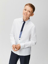 Сорочка приталенного силуэта для мальчика с белой супатной застежкой