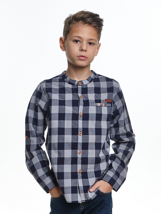 Совместные покупки Омск Детская одежда Рубашки — Mini Maxi Сорочка в клетку (92-116см) UD 1881-5(2) серо-синий