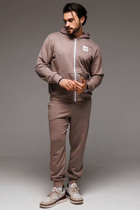 Яркий повседневный мужской спортивный костюм из комфортной ткани (футера без начеса), который подойдёт для дома, прогулок, путешествий и просто отдыха. Состоит из худи с контрастной застежкой молнией и брюк-джоггеров.