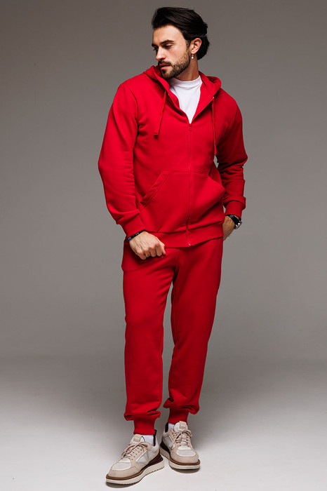 Классический мужской спортивный костюм состоит из худи на застёжке-молнии и брюк на манжетах. Всесезонная ткань сделает его любимым в Вашем гардеробе как для дома, так и улицы.