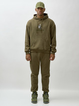 Спортивный костюм из плотного хлопкового трикотажного полотна с изнаночным начесом. Куртка на поясе с воротником, застегивается на молнию. Рукава втачные. Куртка скомбинирована из двух видов полотна, с контрастными рукавами. Яркость изделия подчеркивает клубная вышивка на груди и использование полосатого полотна для пояса, воротника и манжет куртки. Карманы куртки и брюк прорезные, с молниями . Брюки по низу заужены манжетами.Брюки прямого силуэта.Пояс брюк эластичный, по линии талии дополнительно регулируется шнурком.