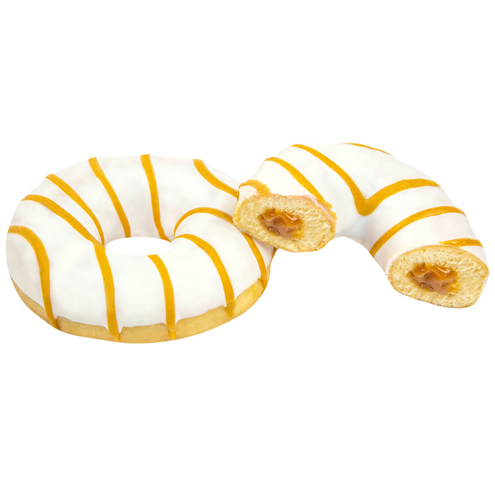 Совместные покупки Омск Продукты Прочая заморозка — STOKSON Пончик Донат Карамельная начинка белая глазурь, карамельные полоски