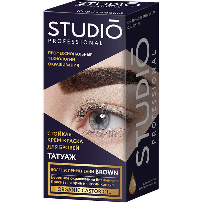 Совместные покупки Омск Косметика и парфюмерия Средства для бровей — STUDIO Краска д/бровей и ресниц Темно-коричневый с эфф.татуажа, 30/20мл (50656