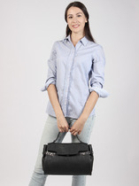 Сумка женская с тремя отделениям на молнии. По бокам и на задней стенке - карман на молнии. Внутри среднего отделения - открытый карман для сотового и карман на молнии. Высота ручек - 18 см. Регулируемый съемный ремень.
