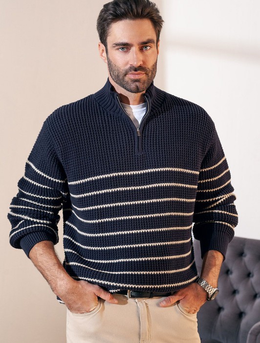 Заказать Свитер фактурной крупной вязки с металлической молнией