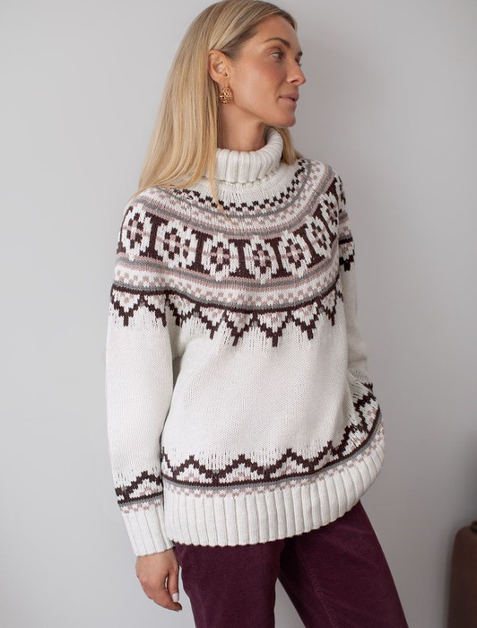 Состав: 60%Хлопок 40%ПАН (акрил) Плотность: 5 GG Размер товара на первом фото: 42Свитер фактурной вязки выполнен из хлопковой пряжи с добавлением акрила. Уютная модель в скандинавском стиле внесет эстетику зимнего загородного отдыха в любой гардероб. Мягкая пряжа очень приятная к телу хорошо поддерживает тепло при этом не перегревая. Отлично держит форму даже после множества стирок. Свободный силуэт позволяет носить под низ футболки, лонгсливы и топы. Изделие дополнено металлическим логотипом бренда.