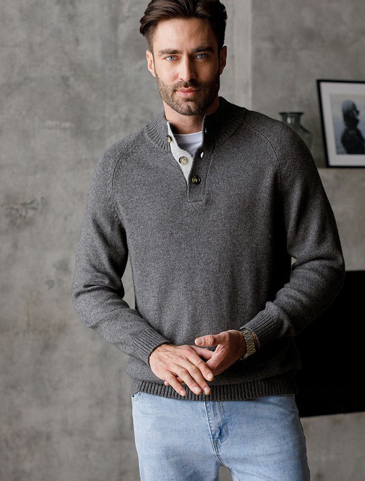 Совместные покупки Омск Мужская одежда Футболки — Свитер из теплой пряжи с шерстью с застежкой на крупные пуговицы